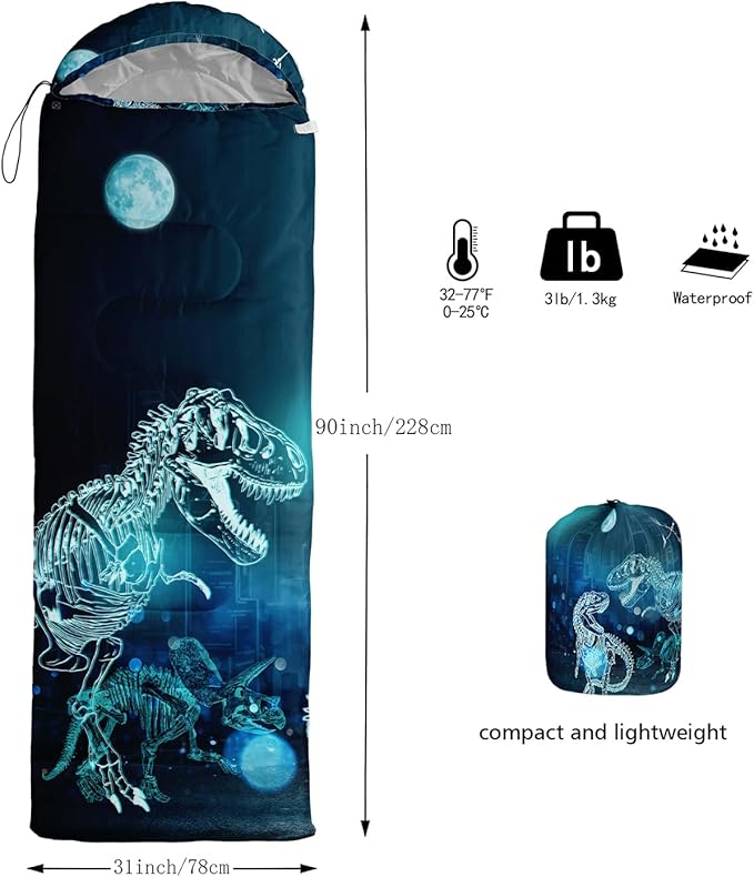 • Premium Material - The camping sleeping bag is made of premium 220T ripstop microfiber fabric,comfortable and breathable,lined with 220T cotton pongee. The waterproof outer protective shell is made of a unique hexagonal design and high-quality Material with double S-stitching and microfiber filling for optimal warmth and insulation to protect you from the elements. The bright colors are loved by boys and girls,great for kids and adults alike!