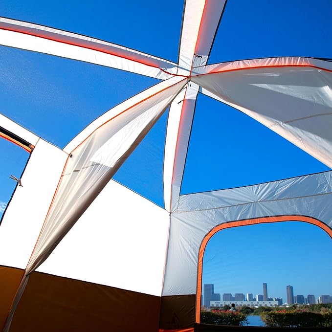 • Large space:Inside dimension16ft length*11ft width*7.4ft height, fit 4 full air mattresses(6.7ft*5ft/200cm*150cm),can accommodate 12-14 person.straight wall design, interior space is larger and more comfortable.