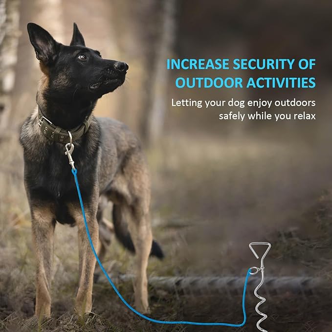 • [EASY TO USE]: Easy to screw the dog stake into the ground like a bottle opener, and then connect the collar to the tie-out cable, the clip can ensure an easy on/off the connection, saving time and effort.