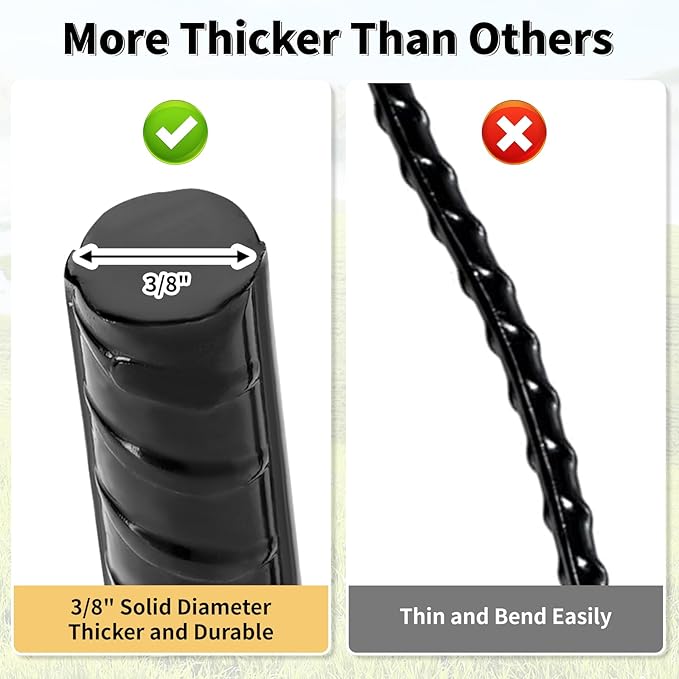 • 【MULTIPLE PURPOSES】Metal stakes are sturdy and reusable, widely used in garden, yard and outdoor camping. Use them as heavy duty tent anchors, shepherd's hooks, stakes for inflatables, chain link fence ground anchors, trap anchors, landscape spikes, cage anchors, trampoline stakes etc