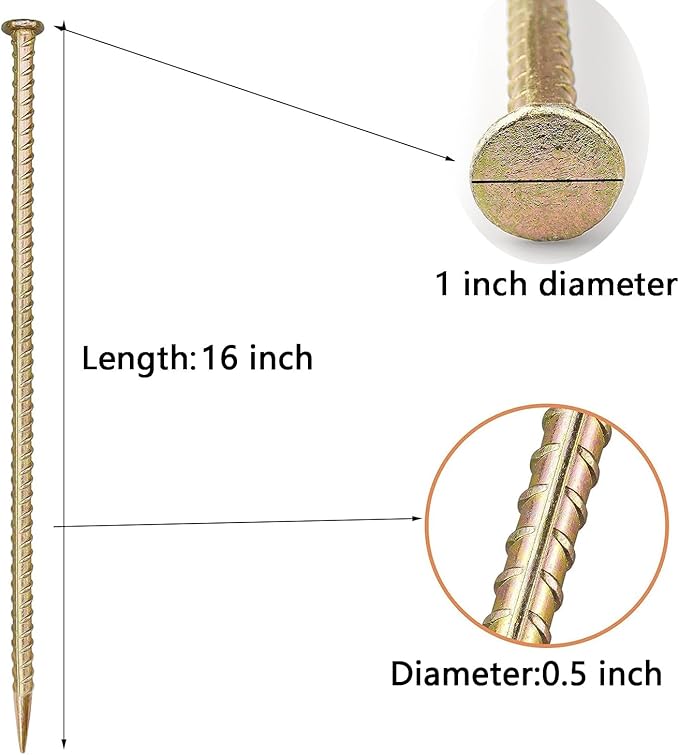 • 1-INCH LARGE TOP: Rebar stakes has a 1-inch top, and the wide top can firmly fix the object. When the rope is used to wrap the reinforcement stake, the rope will not escape from the stake top.