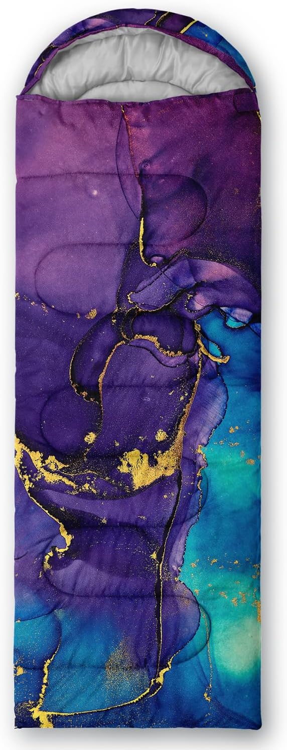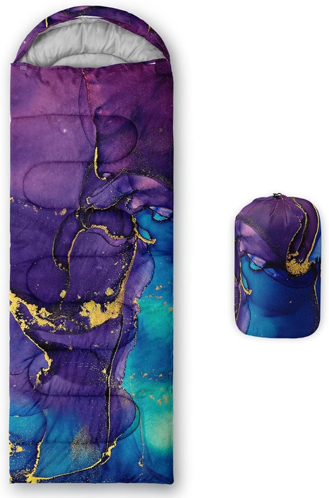 • Premium Material - The camping sleeping bag is made of premium 220T ripstop microfiber fabric,comfortable and breathable,lined with 220T cotton pongee. The waterproof outer protective shell is made of a unique hexagonal design and high-quality Material with double S-stitching and microfiber filling for optimal warmth and insulation to protect you from the elements. The bright colors are loved by boys and girls,great for kids and adults alike!