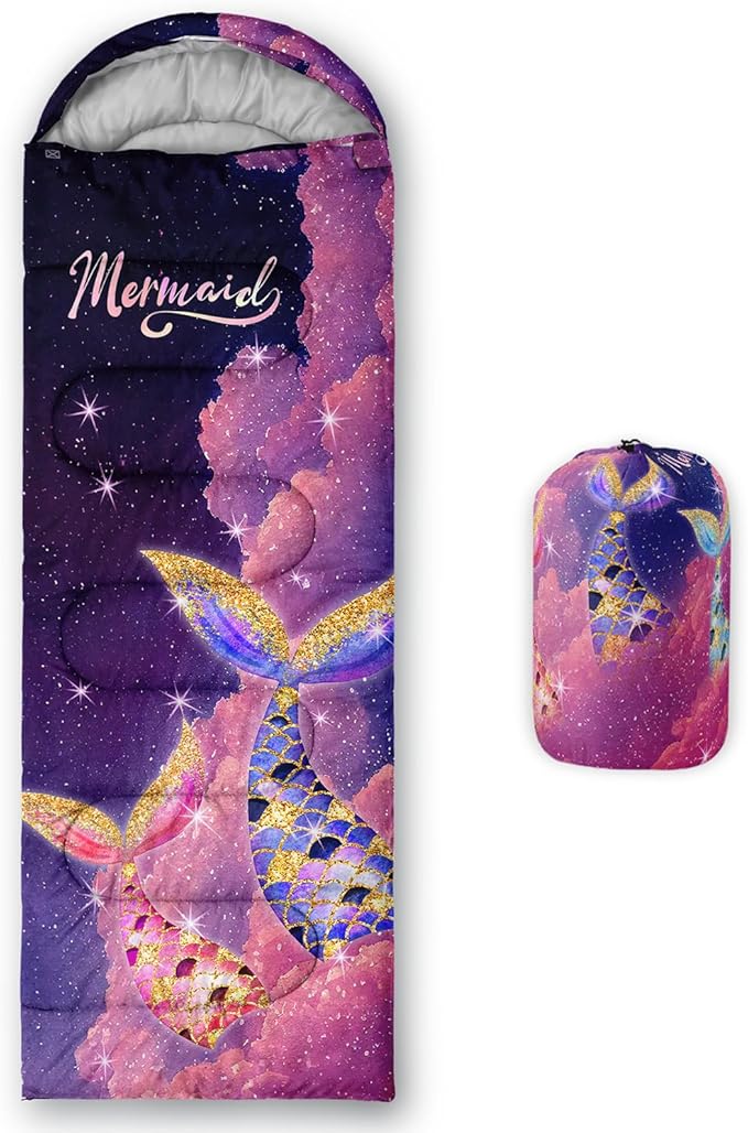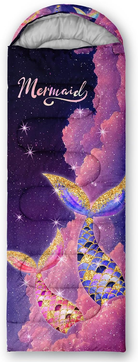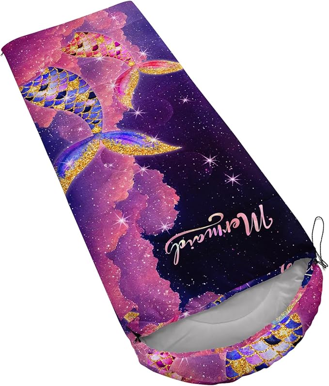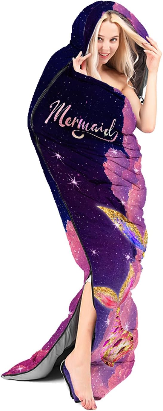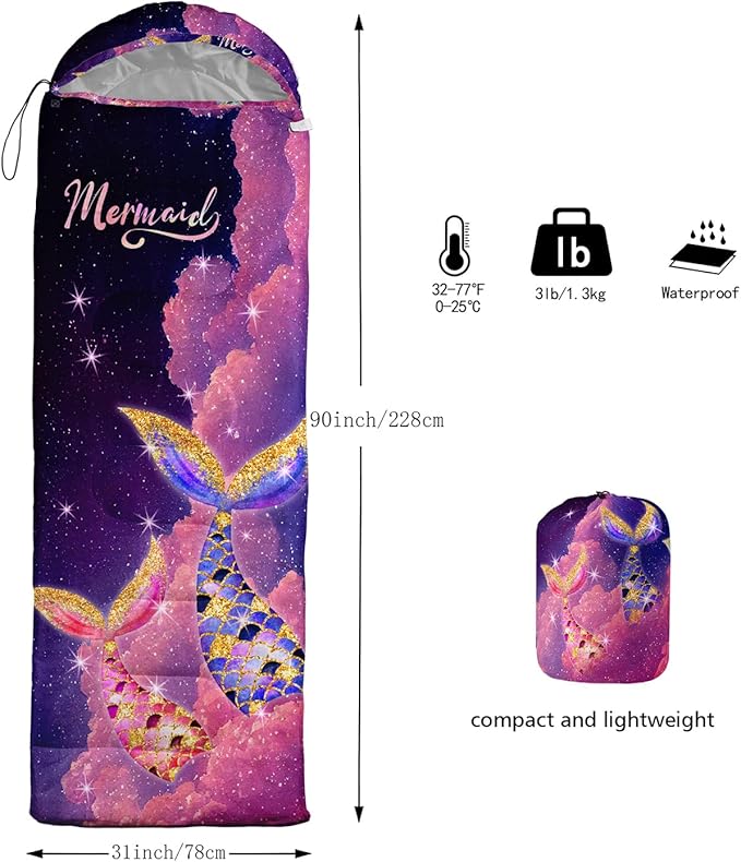• Mermaid sleeping bags For All Seasons- Our camping sleeping bags are designed to give you a good night's sleep. Ideal for spring,summer,fall,and winter,rated from 32°F to 77°F (optimal comfort temperature is 50°F to 65°F). Stay comfortable and warm in any condition at normal altitude. Can be used for any outdoor adventure,class camping,summer camps,couch surfing,indoor blanket,and as an emergency blanket for vehicles.
