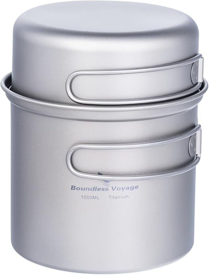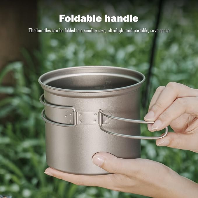 • Ultralight Titanium Camping Cookset (1000ml+500ml) - Perfect for 1-2 backpackers! Weighs just 181.5g with premium titanium construction - rustproof, odorless, and ultra-durable. The 1000ml pot handles main meals while the 500ml pot boils water. Compact nesting design saves space. Ideal for hiking, camping, and outdoor adventures.