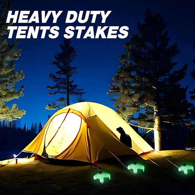 • Package Contents: you will get 20 pieces of metal tent stakes for Inflatables and 1 piece of 0.51 inch diameter hex head driver, enough quantity to meet your applying needs and replacement needs; The stakes are approx. 12 inch/ 30 cm long, the thread is approx. 8 inch/ 20 cm long and approx. 0.31 inch/ 0.8 cm in diameter; The light up top of the tent stake keeps you from tripping over it, also can reduce the loss of tent stakes