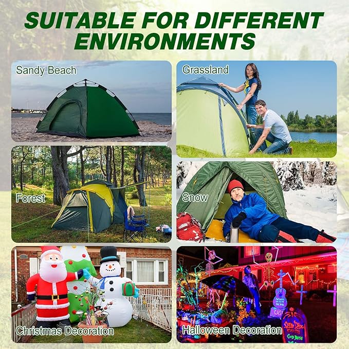 • Wide Range of Applications: the inflatable decoration stakes can be applied to fix ordinary outdoor travel tents, but also can be applied to your tent, canopy, canopies, tarps, picnic mats or even to secure your dog leash, they are quite useful camping travel tools, convenient and portable;and these stakes for inflatables can be applied in various occasions, such as garden lights, Thanksgiving, Halloween pumpkin lights and streetlights, Christmas santa claus and snowman