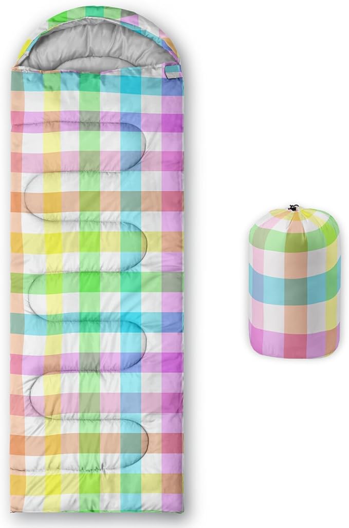 • Colorful Stripes sleeping bags For All Seasons- Our camping sleeping bags are designed to give you a good night's sleep. Ideal for spring,summer,fall,and winter,rated from 32°F to 77°F (optimal comfort temperature is 50°F to 65°F). Stay comfortable and warm in any condition at normal altitude. Can be used for any outdoor adventure,class camping,summer camps,couch surfing,indoor blanket,and as an emergency blanket for vehicles.
