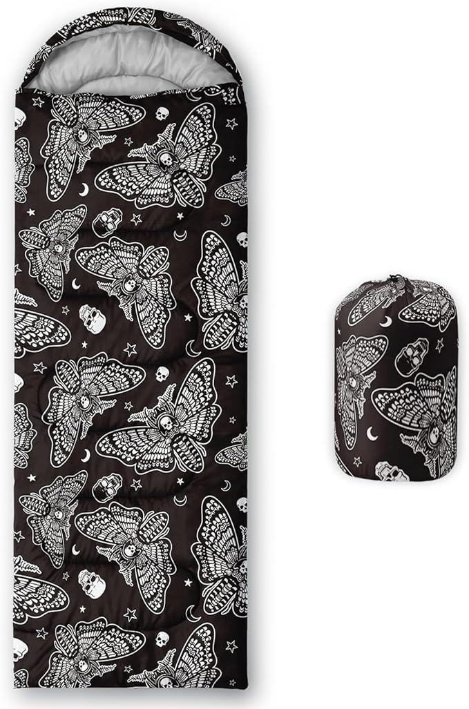 • 【Fits For 3 Seasons】: Size - 31 by 90 inches (W x D). Our Death Moth sleeping bag can be used in 3 seasons with a design temperature of 32℉-77℉(0℃-25℃). These Sleeping bags also have a weather resistant waterproof design to keep you warm and prevent you from any dampness.