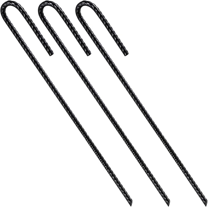 Rebar Stakes U/J Hook Extra Heavy Duty,(50pcs) 12 inch x 1/4 inch Rust Proof Coated Steel Ground Stakes Ground Anchors, Garden Stake Metal Stakes Tent Stakes Trampoline Anchors (J-Hook)