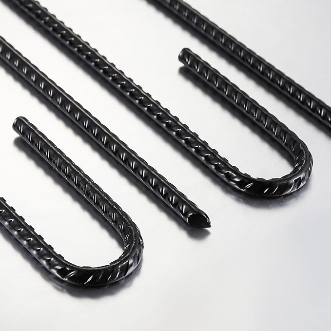 • Firm: increases the friction with the soil, making it difficult to pull out. Each steel bar pile is 12 inches long, and the diameter of our heavy J hook is 1 inch 4 inches.