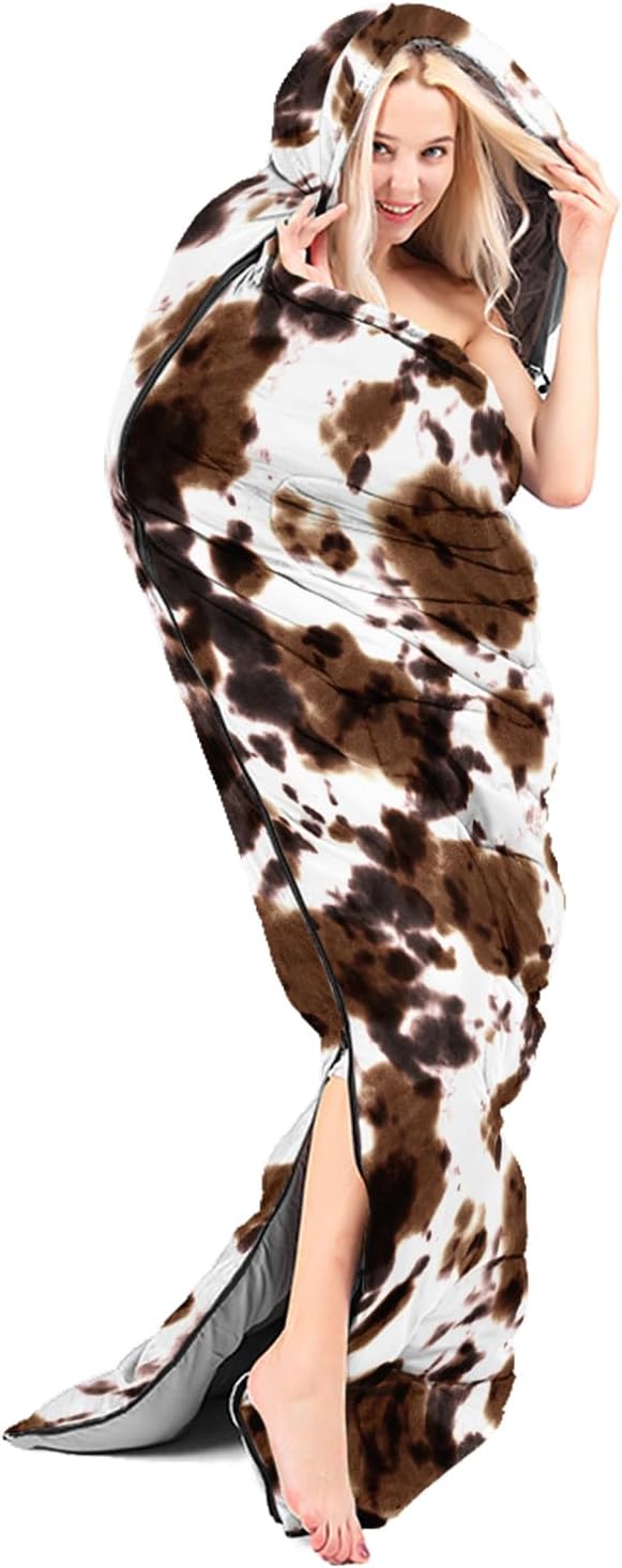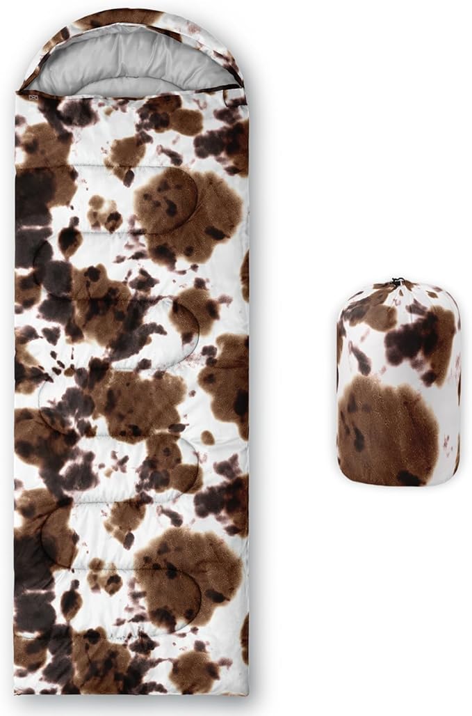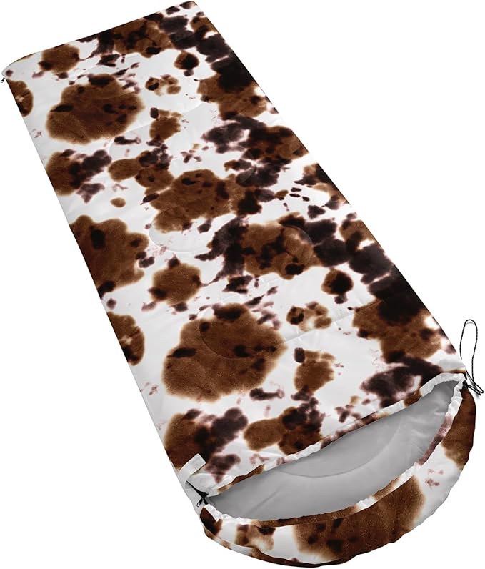 • Brown And White Cow Print sleeping bags For All Seasons- Our camping sleeping bags are designed to give you a good night's sleep. Ideal for spring,summer,fall,and winter,rated from 32°F to 77°F (optimal comfort temperature is 50°F to 65°F). Stay comfortable and warm in any condition at normal altitude. Can be used for any outdoor adventure,class camping,summer camps,couch surfing,indoor blanket,and as an emergency blanket for vehicles.