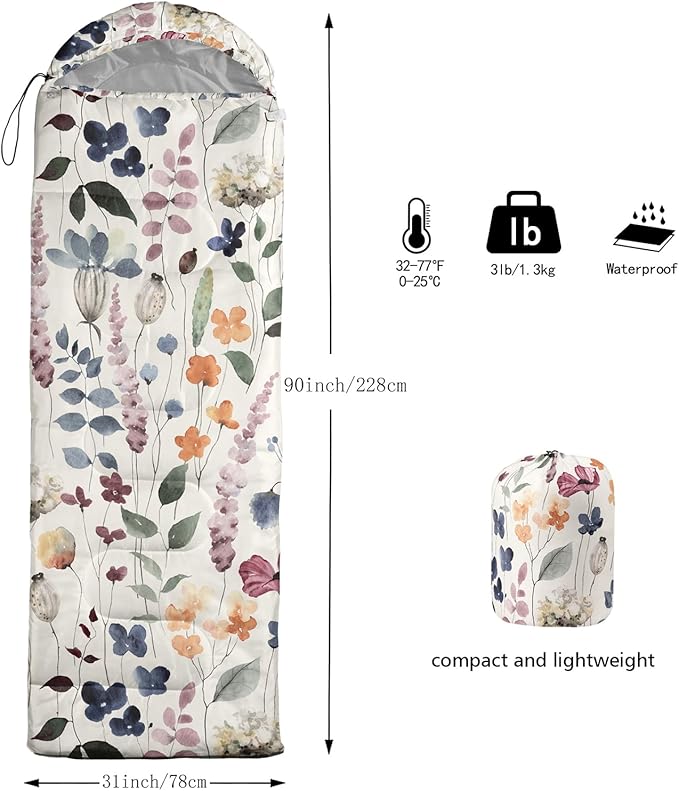 • Weed Flowers sleeping bags For All Seasons- Our camping sleeping bags are designed to give you a good night's sleep. Ideal for spring,summer,fall,and winter,rated from 32°F to 77°F (optimal comfort temperature is 50°F to 65°F). Stay comfortable and warm in any condition at normal altitude. Can be used for any outdoor adventure,class camping,summer camps,couch surfing,indoor blanket,and as an emergency blanket for vehicles.