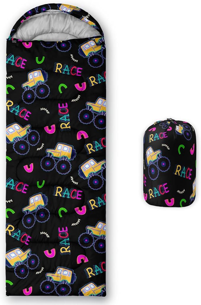 • Premium Material - The camping sleeping bag is made of premium 220T ripstop microfiber fabric,comfortable and breathable,lined with 220T cotton pongee. The waterproof outer protective shell is made of a unique hexagonal design and high-quality Material with double S-stitching and microfiber filling for optimal warmth and insulation to protect you from the elements. The bright colors are loved by boys and girls,great for kids and adults alike!