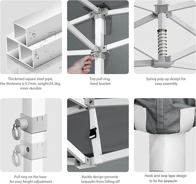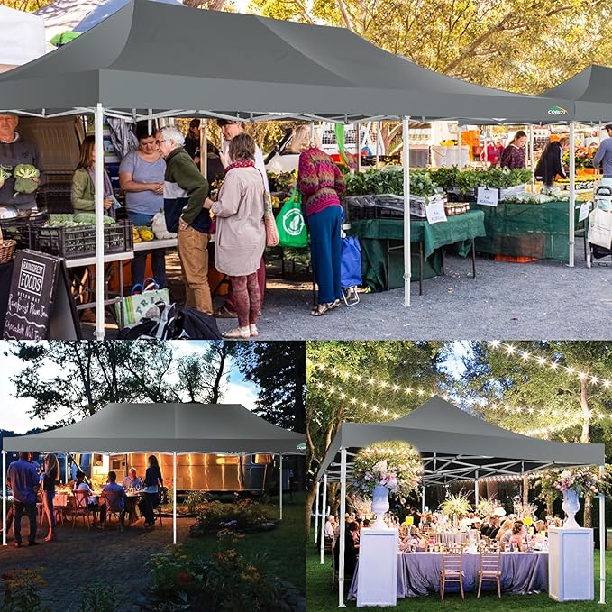 • 【2 Heights Setting】Canopy tent outdoor gazebo tent for parties 13x26 have 2 height settings . You can quickly and easily adjust two height positions by simply pulling the button outward: 231cm/90.9in, 238cm/93.7in, no tools required. COBIZI easy pop up canopy tent have upgraded buttons, which are easy to lock and release, adjust to avoid clamping your hand and be safer.