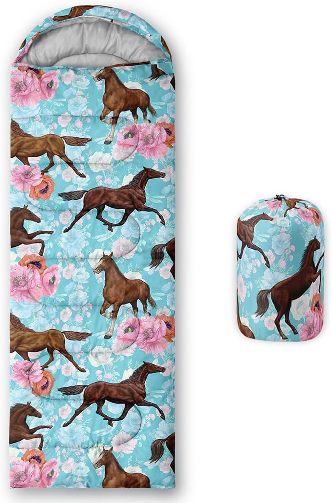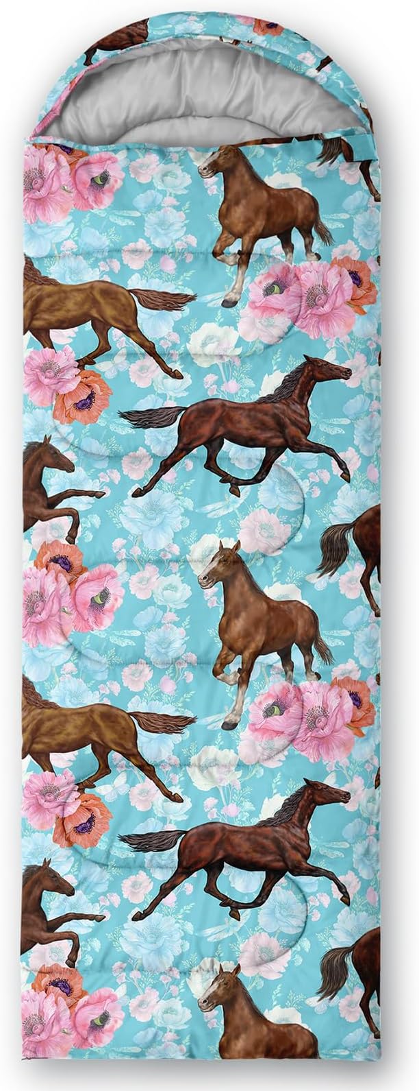 • 【Fits For 3 Seasons】: Size - 31 by 90 inches (W x D). Our Horses sleeping bag can be used in 3 seasons with a design temperature of 32℉-77℉(0℃-25℃). These Sleeping bags also have a weather resistant waterproof design to keep you warm and prevent you from any dampness.