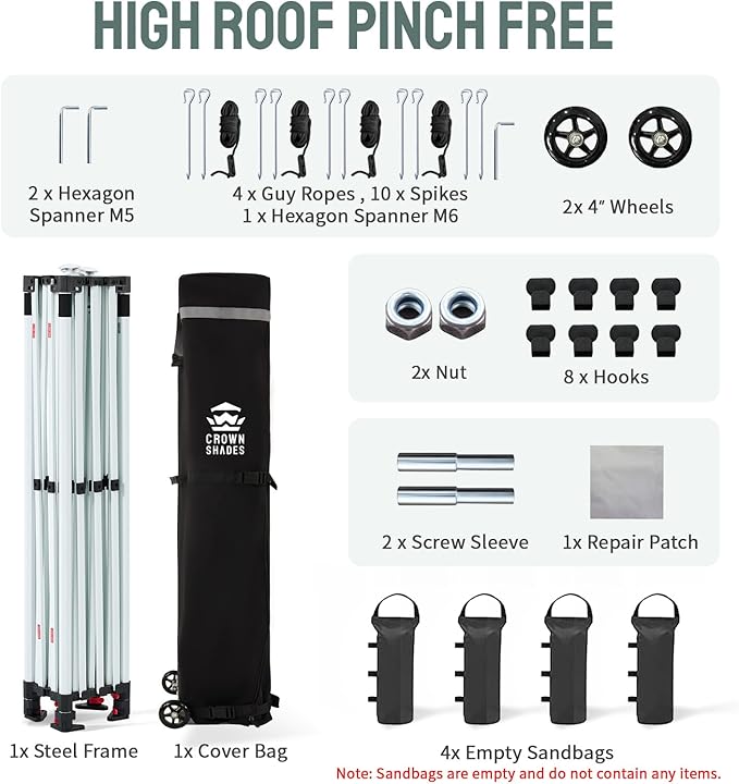 • EFFORTLESS HEIGHT CUSTOMIZATION: With our pinch-free design, easily adjust the height of your pop-up tent canopy to three different levels. This feature allows for quick changes on the outdoor tent canopy, ensuring optimal functionality in any setting