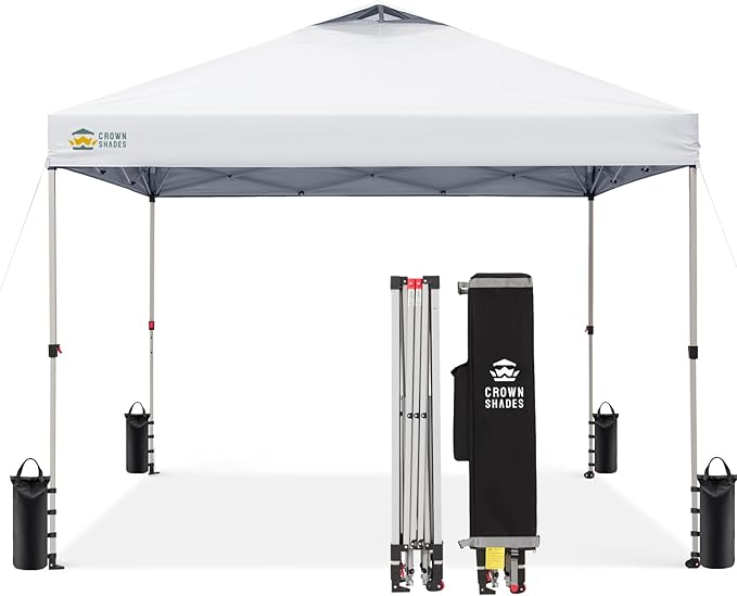 CROWN SHADES 12x12 Pop Up Canopy Outside Canopy, Patented One Push Tent Canopy with Wheeled Carry Bag, Bonus 8 Stakes and 4 Ropes, White