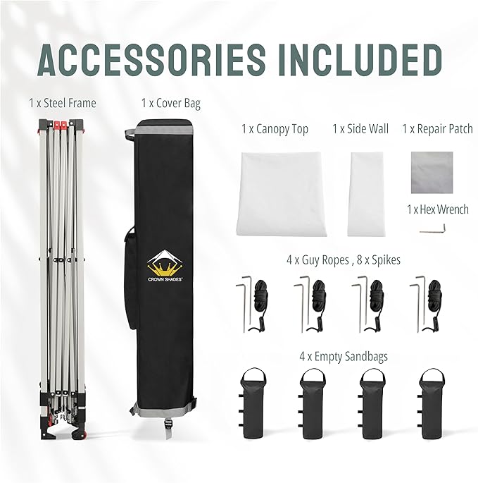 CROWN SHADES 12x12 Pop Up Canopy Tent Instant Commercial with 150D Silver Coated Fabric Including 1 Removable Sidewall, 4 Ropes, 8 Stakes, Weight Bags, STO 'N Go Bag, White