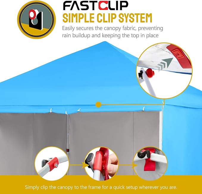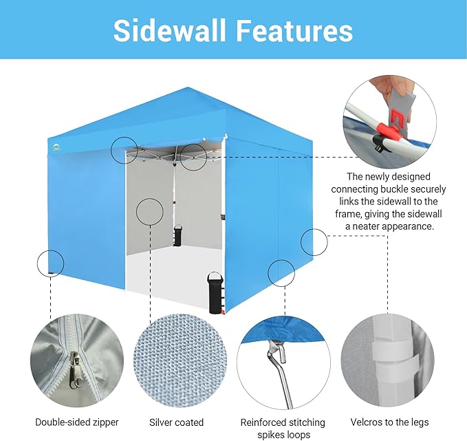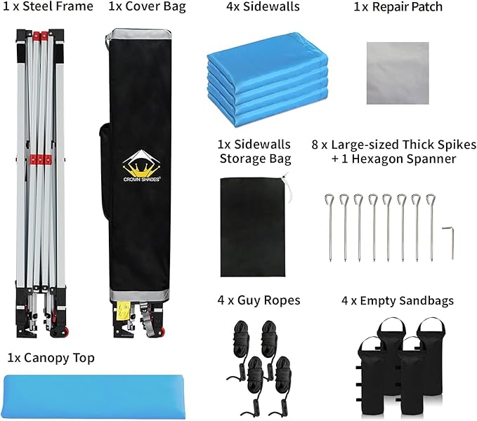 CROWN SHADES 10X10 Comercial Instant Canopy Pop Up Tent with Center Lock (10x10 with 4 Sidewalls, Sky Blue)