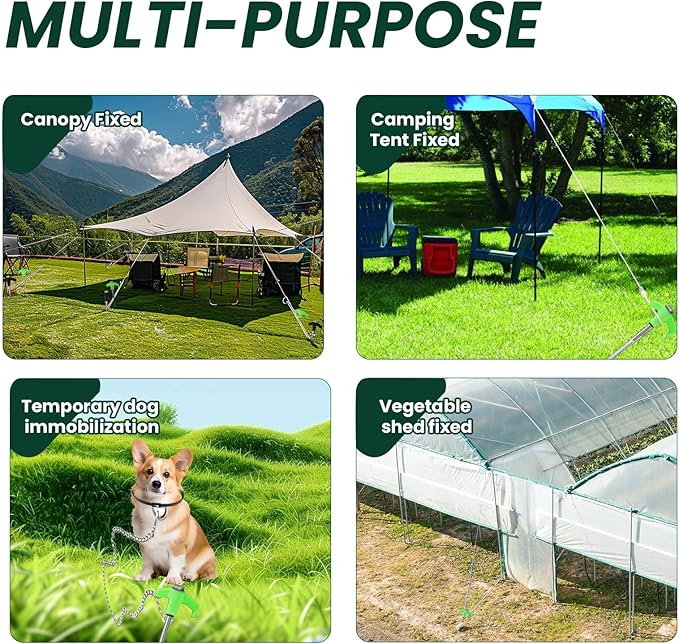 • Safe for Using: Our metal stakes offer enough strength under windy conditions and are suitable for use in grass, dirt, harder soils and sand; They are important for taking care of your outdoor equipment; Pointed items are included, it is recommended to wear tool gloves to avoid injury when using, and please keep it away from kids