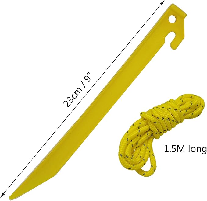 • Plastic Stakes length: 23cm/9 ", nylon rope length is 1.5 meters.