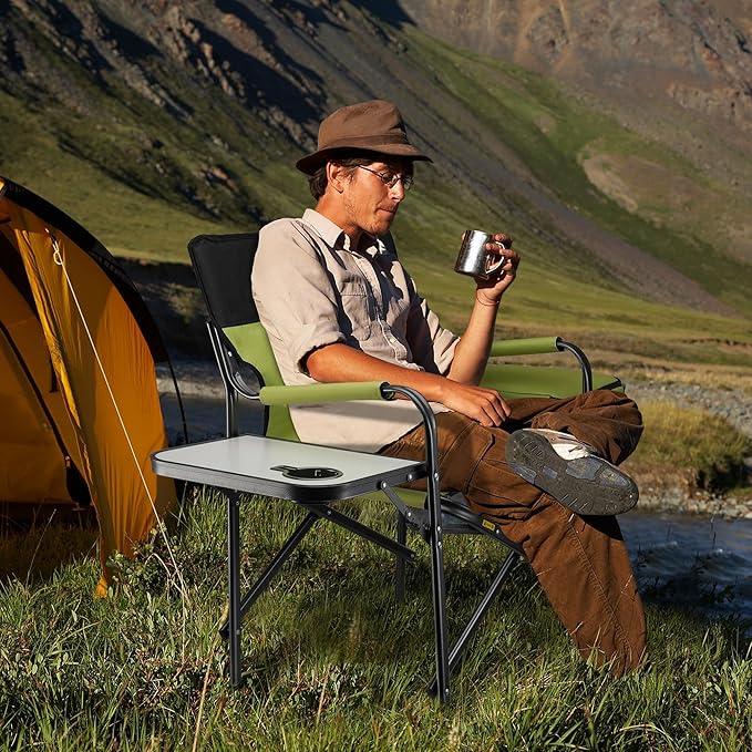 VILLEY Heavy Duty Directors Chair, Folding Camping Chairs, with Cooler Bag Portable Foldable Chair, for Camp Tailgating Lawn Picnic Fishing Beach, Supports 400 LBS, Green
