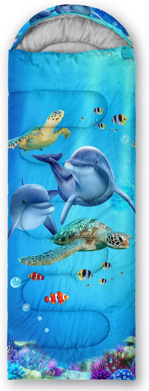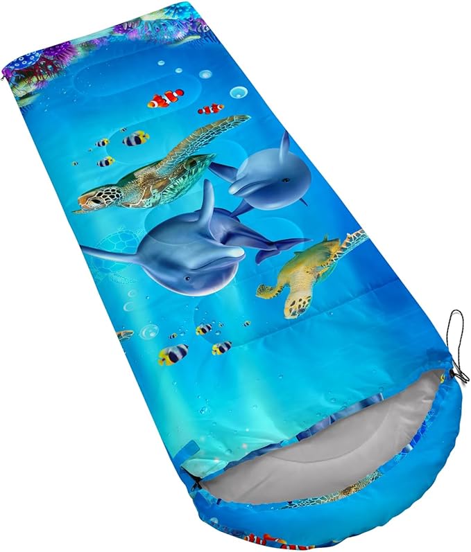 • Kawaii Cartoon Whale Dolphin sleeping bags For All Seasons- Our camping sleeping bags are designed to give you a good night's sleep. Ideal for spring,summer,fall,and winter,rated from 32°F to 77°F (optimal comfort temperature is 50°F to 65°F). Stay comfortable and warm in any condition at normal altitude. Can be used for any outdoor adventure,class camping,summer camps,couch surfing,indoor blanket,and as an emergency blanket for vehicles.