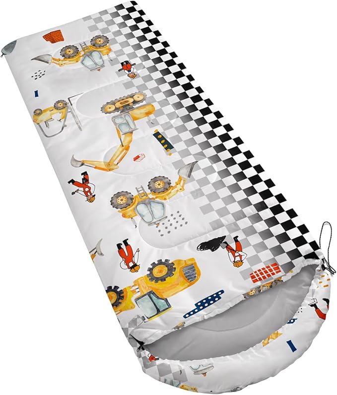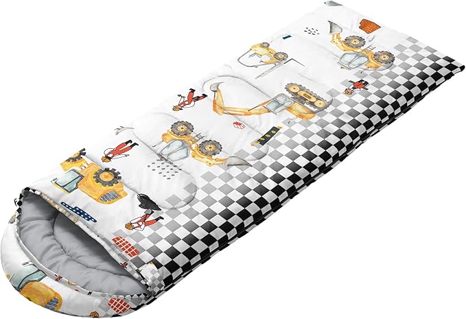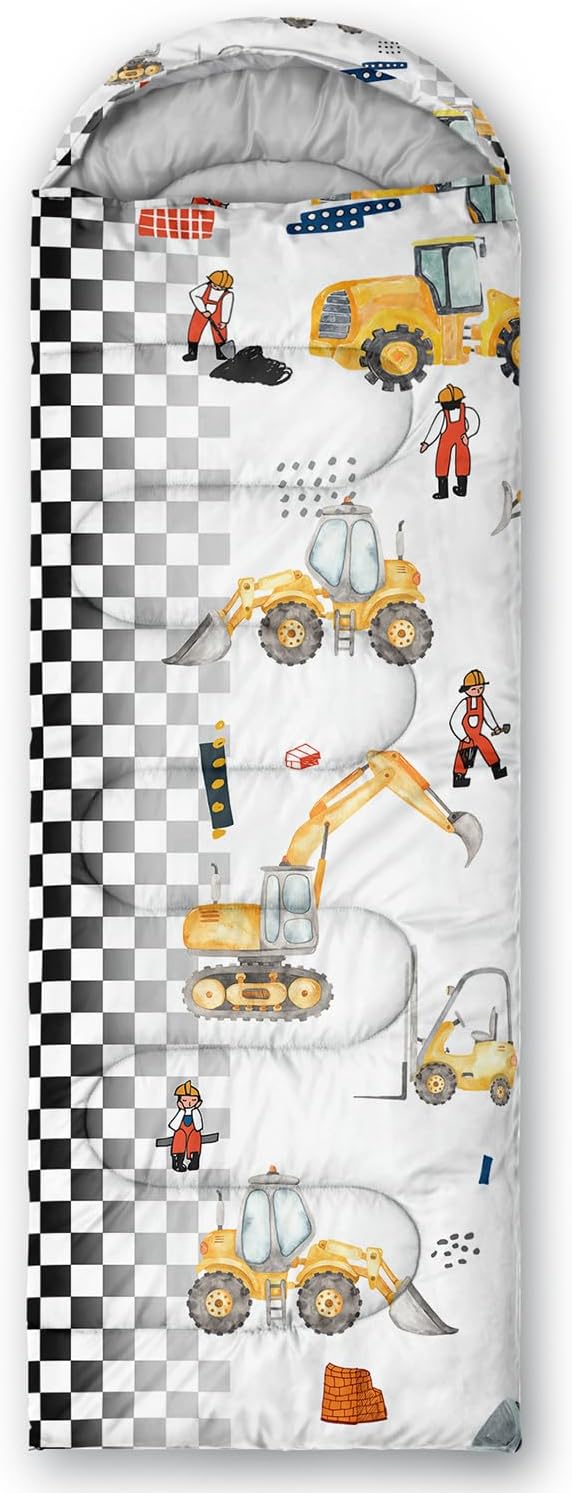 • Cartoon Construction Truck sleeping bags For All Seasons- Our camping sleeping bags are designed to give you a good night's sleep. Ideal for spring,summer,fall,and winter,rated from 32°F to 77°F (optimal comfort temperature is 50°F to 65°F). Stay comfortable and warm in any condition at normal altitude. Can be used for any outdoor adventure,class camping,summer camps,couch surfing,indoor blanket,and as an emergency blanket for vehicles.