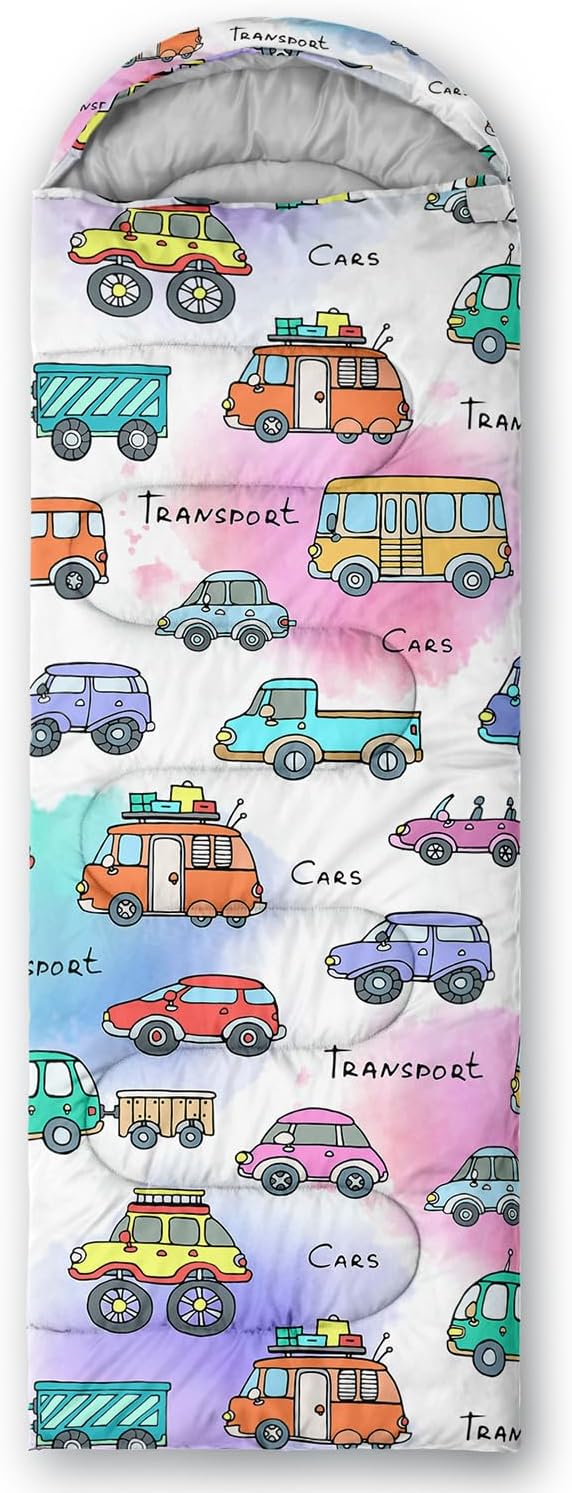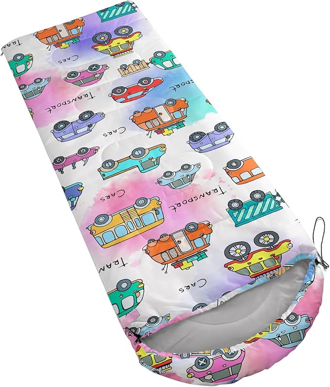 • Colorful Tie Dye Cartoon Car For All Seasons- Our camping sleeping bags are designed to give you a good night's sleep. Ideal for spring,summer,fall,and winter,rated from 32°F to 77°F (optimal comfort temperature is 50°F to 65°F). Stay comfortable and warm in any condition at normal altitude. Can be used for any outdoor adventure,class camping,summer camps,couch surfing,indoor blanket,and as an emergency blanket for vehicles.