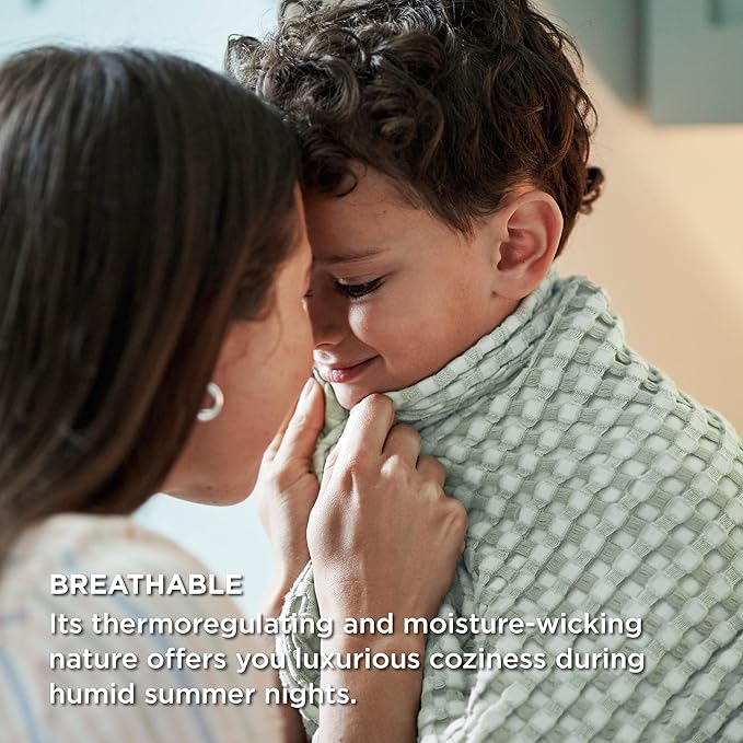 • Breathable & Moisture-Wicking: Made from 50% cotton and 50% rayon derived from bamboo, this cooling blanket naturally absorbs moisture and is exceptionally breathable, providing a comfortable and dry night's sleep for hot sleepers.