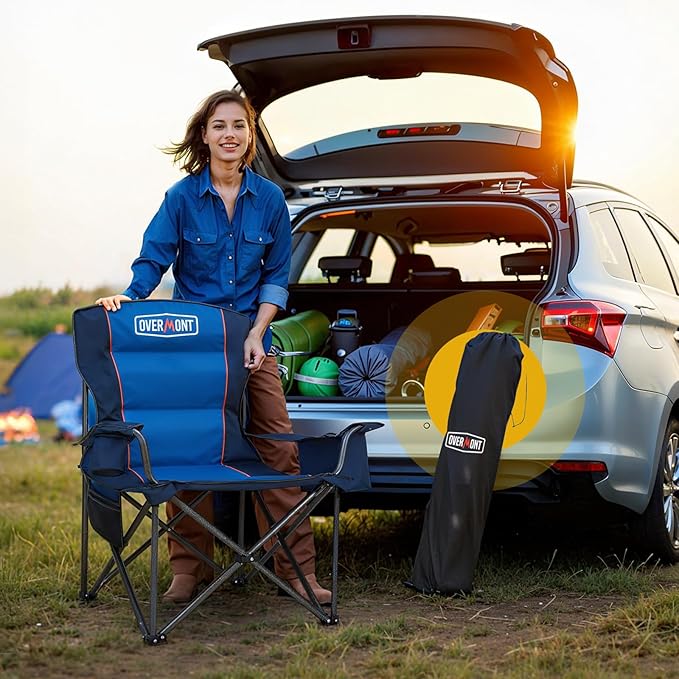 • 【Durable Oxford Fabric】Overmont oversized folding chair measures 39x20x24in and is made of double-layer tear-resistant 600D Oxford fabric with sponge cushion, providing excellent durability and breathability.