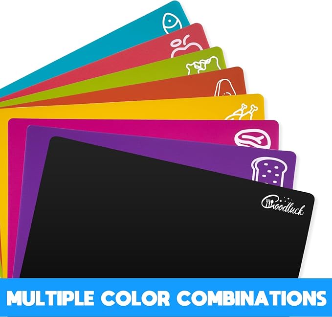 • Large Enough Size - The flexible cutting mats have more color options to choose and dimensions are 14.65*11.02 inches, which makes enough space for food. The lightweight design is great for college apartments, small kitchens, RVs, or camping.