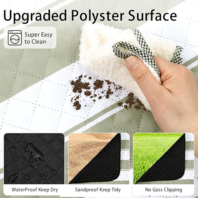 • 【Waterproof & Machine Washable】Outdoor picnic blanket is super easy to clean due to its durable and waterproof backing, easily shake & wipe off dirt, mud, wet grass, and beach sand. And you could put it into washing machine to save your time and free both hands.
