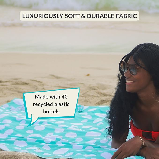 • ECO LUXURY MATERIAL — Ultra comfortable beach mat made with silky eco-friendly microfiber for a greener beach experience. Luxuriously soft, pleasant on skin, quick dry blanket from which sand easily shakes off, washing machine and dryer compatible.