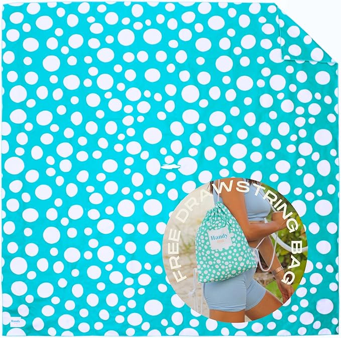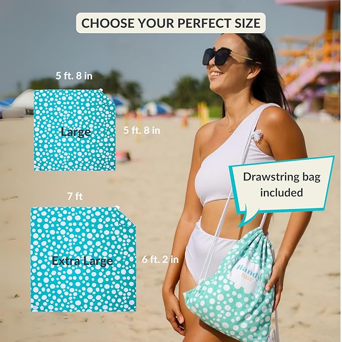 • SPACIOUS EASY PACK BAG — No more struggles with folding and squeezing your beach mat back into its bag. The Handy Beach Mat comes with it's own stylish and spacious drawstring bag so its easy to carry and put away when your done using it.