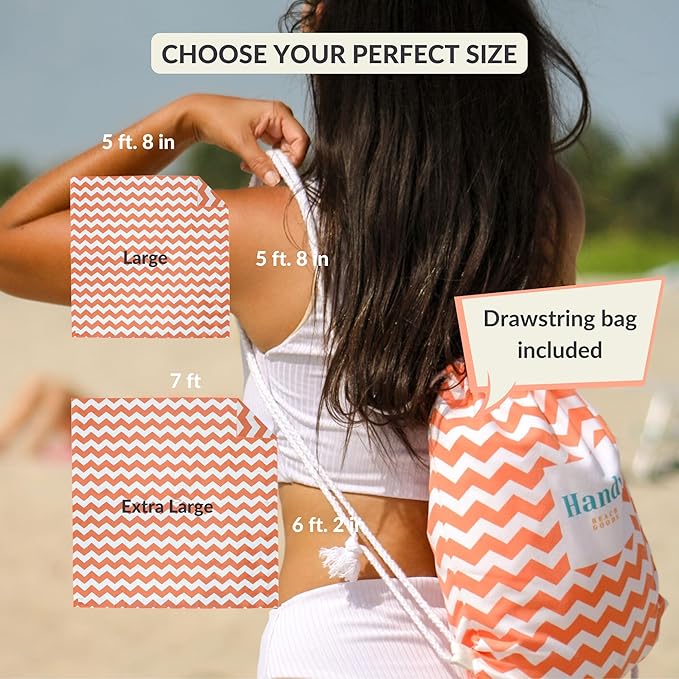 • SPACIOUS EASY PACK BAG — No more struggles with folding and squeezing your beach mat back into its bag. The Handy Beach Mat comes with it's own stylish and spacious drawstring bag so its easy to carry and put away when your done using it.