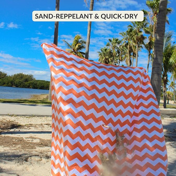 • ECO LUXURY MATERIAL — Ultra comfortable beach mat made with silky eco-friendly microfiber for a greener beach experience. Luxuriously soft, pleasant on skin, quick dry blanket from which sand easily shakes off, washing machine and dryer compatible.