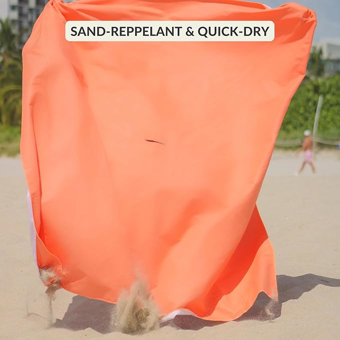 • ECO LUXURY MATERIAL — Ultra comfortable beach mat made with silky eco-friendly microfiber for a greener beach experience. Luxuriously soft, pleasant on skin, quick dry blanket from which sand easily shakes off, washing machine and dryer compatible.