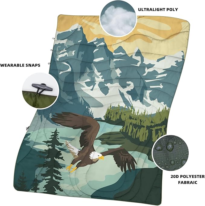 Camping Blanket Puffy - Outdoor Stadium Blanket Wearable, Lightweight, Packable, Machine Washable Camping Quilt for Traveling, Picnic, Beach, Party