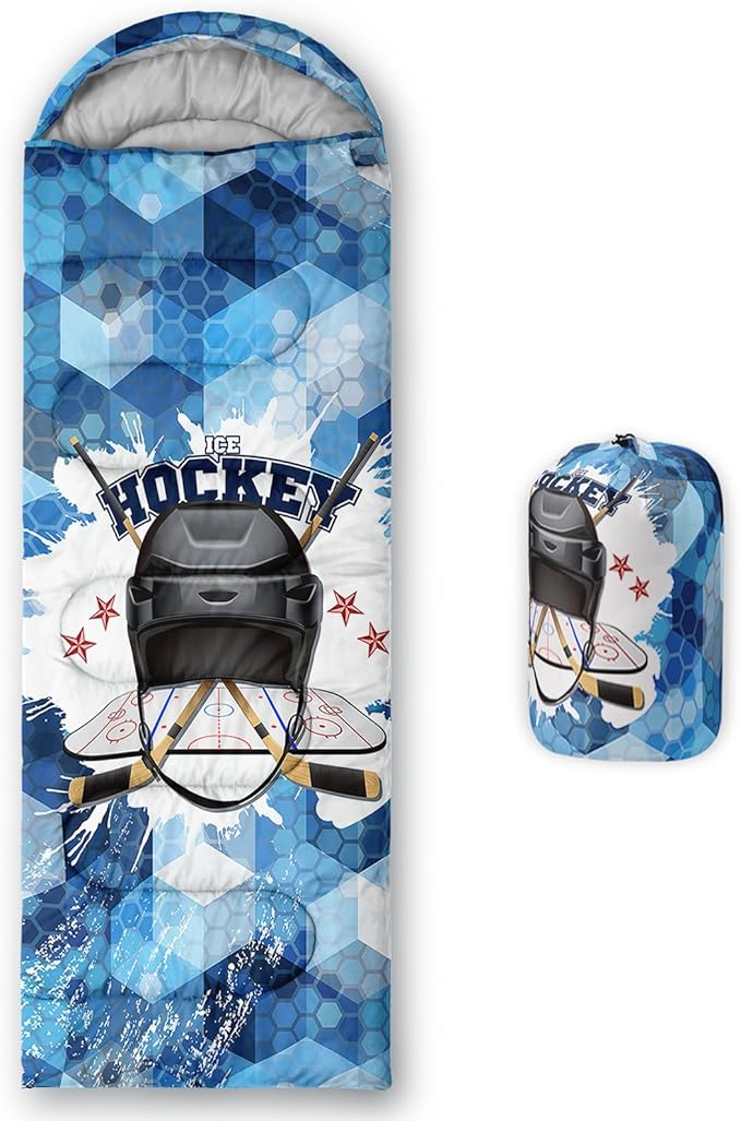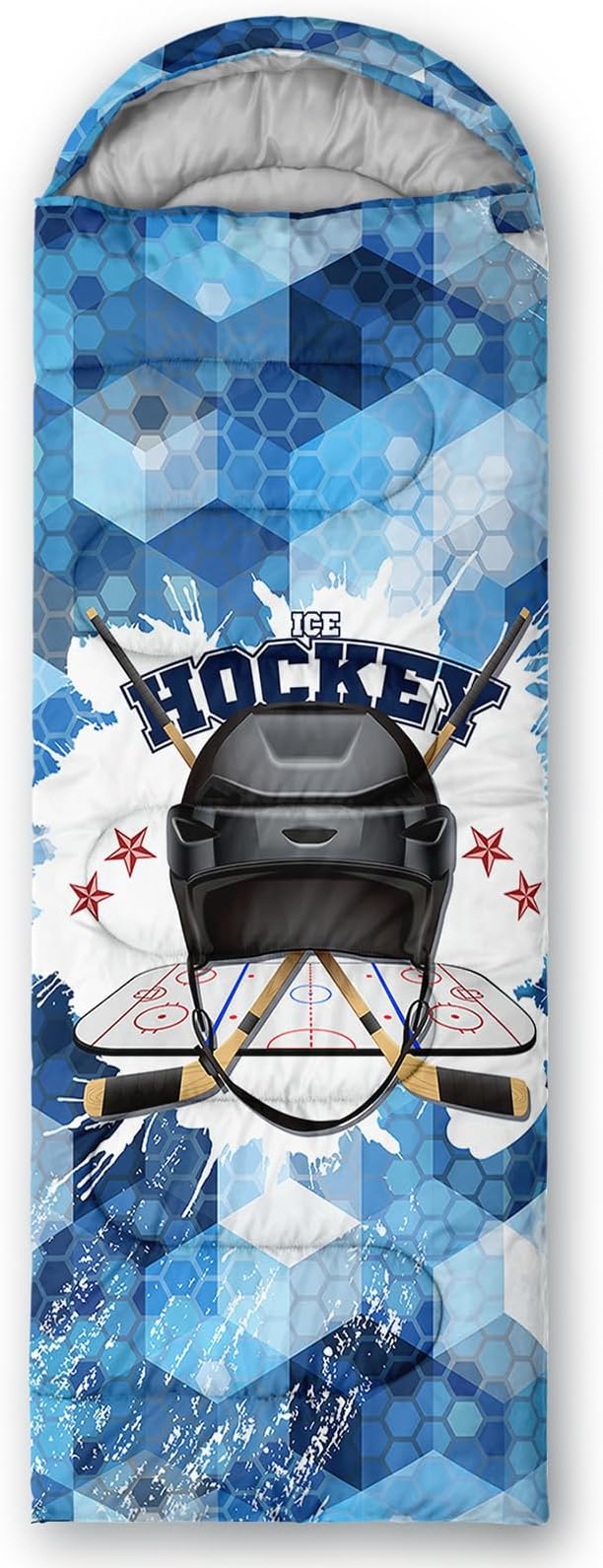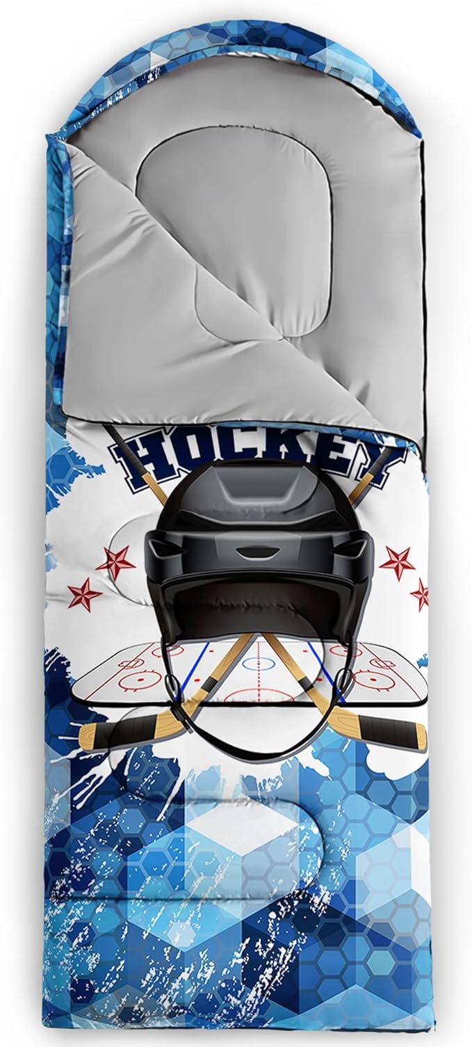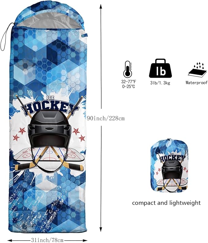 • 【Fits For 3 Seasons】: Size - 31 by 90 inches (W x D). Our Blue Honeycomb Hockey sleeping bag can be used in 3 seasons with a design temperature of 32℉-77℉(0℃-25℃). These Sleeping bags also have a weather resistant waterproof design to keep you warm and prevent you from any dampness.