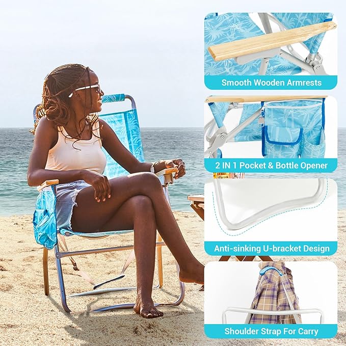 • 【Use in Multiple Scenarios】WEJOY backpack beach chair with wooden armrests is perfect for sitting back and relaxing on the sand or grass, making it perfect for taking to the beach, park, camp site, or even in your own yard.【Use in Multiple Scenarios】WEJOY backpack beach chair with wooden armrests is perfect for sitting back and relaxing on the sand or grass, making it perfect for taking to the beach, park, camp site, or even in your own yard.