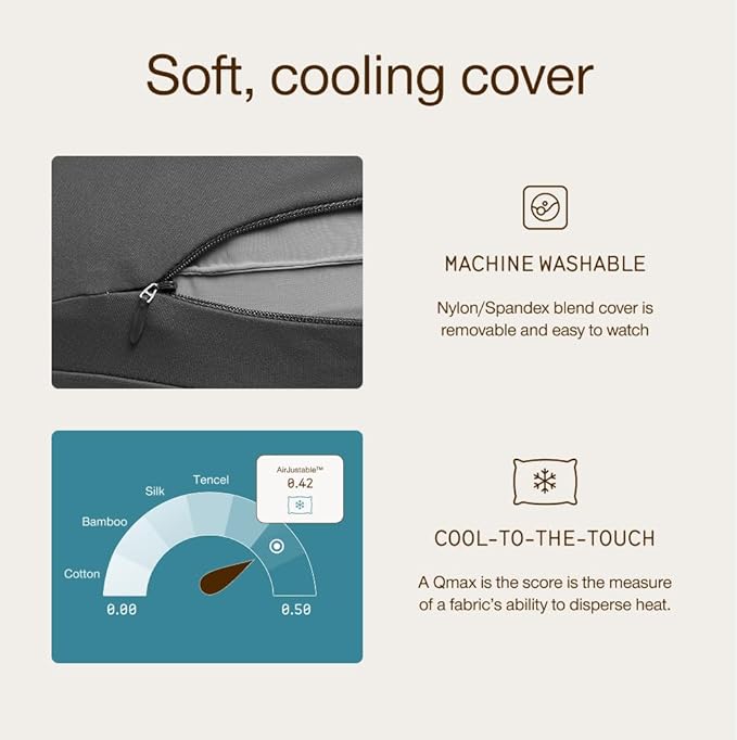 • Cooling, Soft, Removable Outer Cover: The AirJustable Travel Neck Pillow is designed with a breathable outer cover boasting a Qmax score of .42 for a cool-to-touch feel, ensuring you stay cool and relaxed throughout your journey. For added convenience, the removable cover is machine washable, making it easy to keep your inflatable neck pillow clean, fresh, and ready for your next adventure.