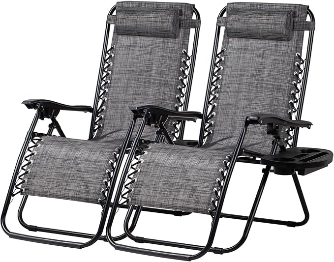 Nazhura Set of 2 Relaxing Recliners Patio Chairs Adjustable Steel Mesh Zero Gravity Lounge Chair Beach Chairs with Pillow and Cup Holder(Grey)