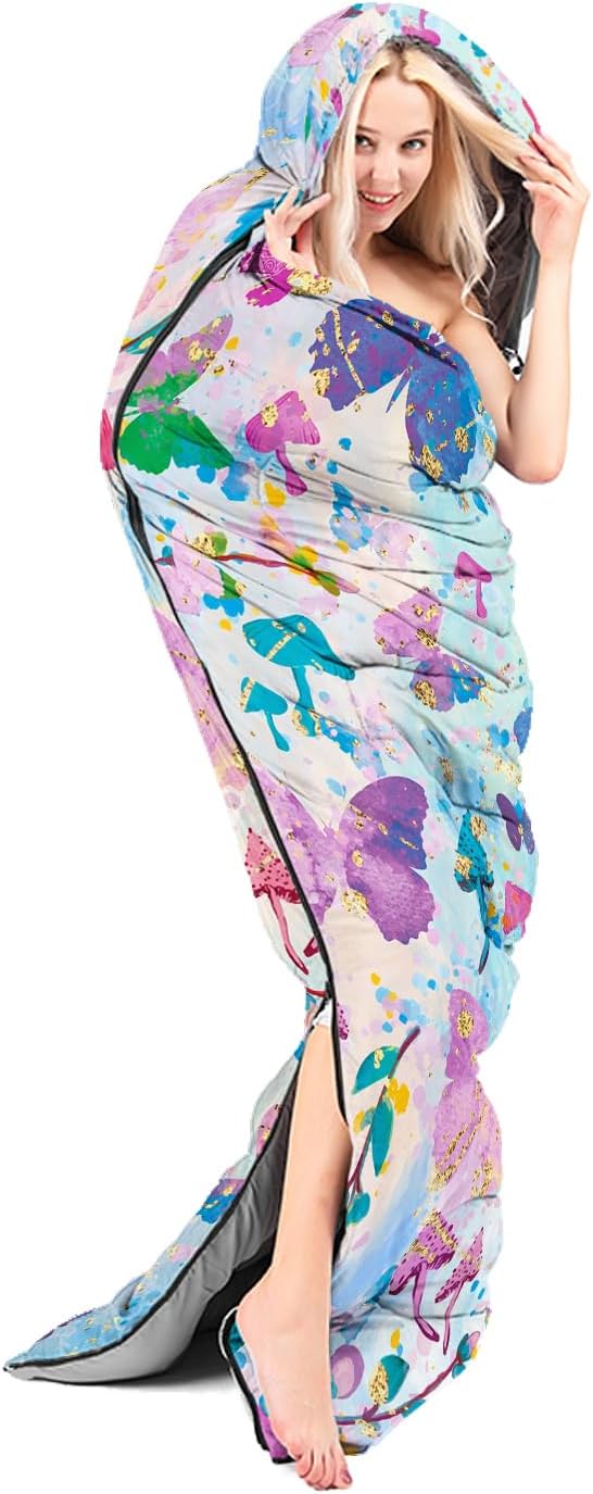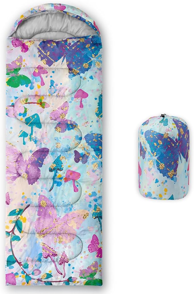 • Tie Dye Gold Butterfly sleeping bags For All Seasons- Our camping sleeping bags are designed to give you a good night's sleep. Ideal for spring,summer,fall,and winter,rated from 32°F to 77°F (optimal comfort temperature is 50°F to 65°F). Stay comfortable and warm in any condition at normal altitude. Can be used for any outdoor adventure,class camping,summer camps,couch surfing,indoor blanket,and as an emergency blanket for vehicles.