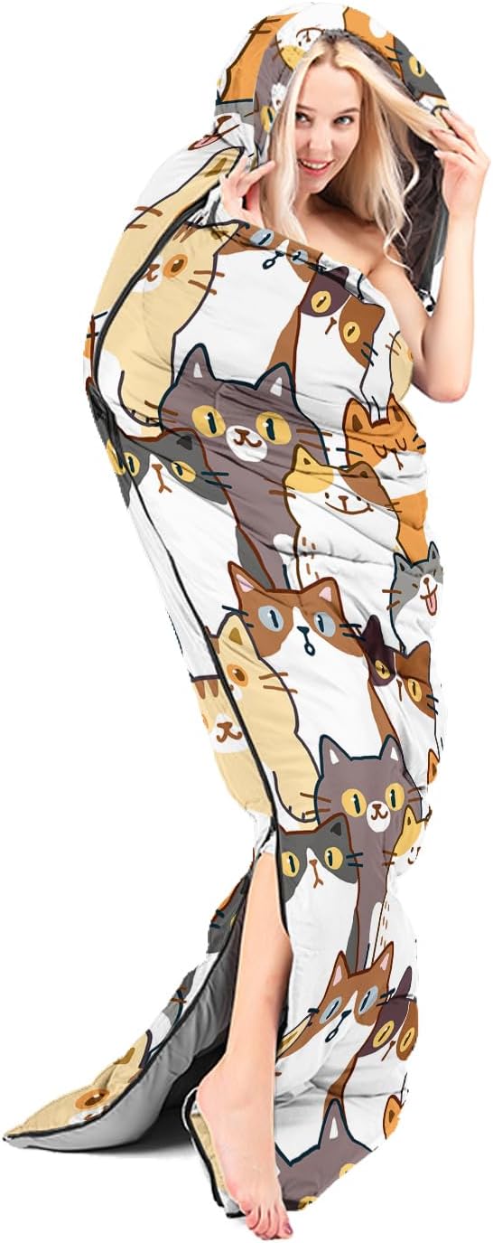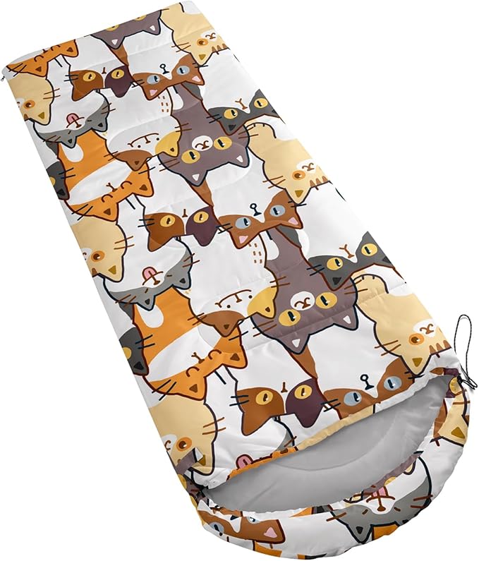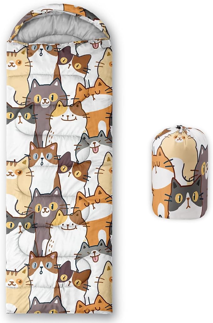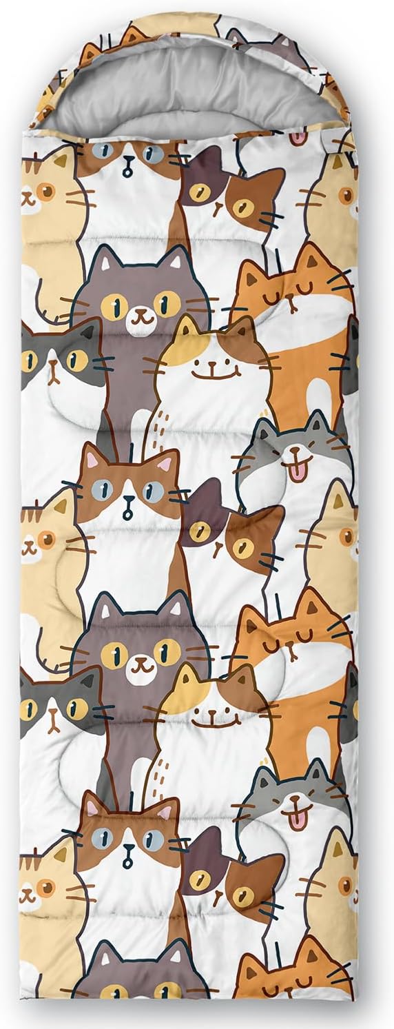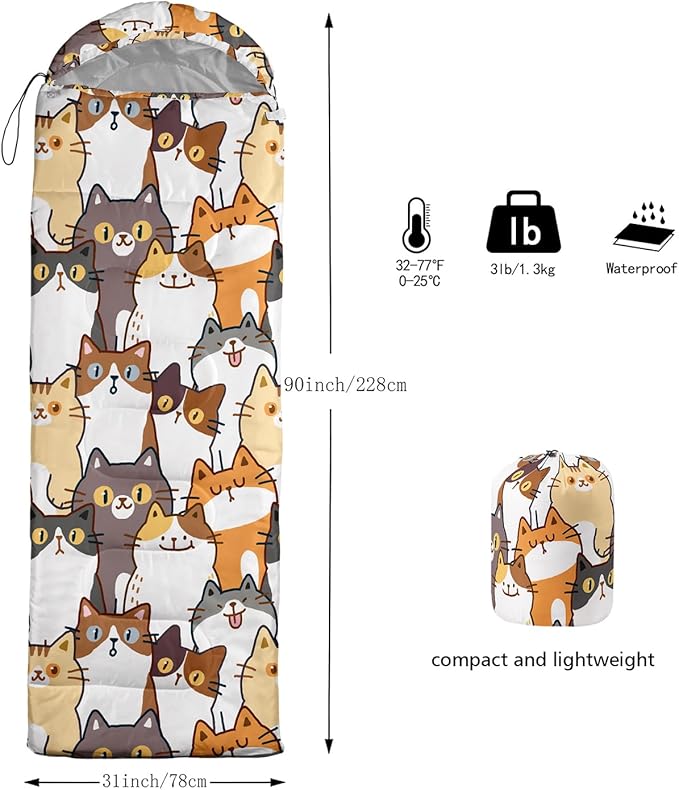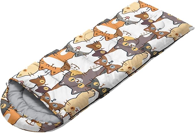 • Kawaii Cute Cat sleeping bags For All Seasons- Our camping sleeping bags are designed to give you a good night's sleep. Ideal for spring,summer,fall,and winter,rated from 32°F to 77°F (optimal comfort temperature is 50°F to 65°F). Stay comfortable and warm in any condition at normal altitude. Can be used for any outdoor adventure,class camping,summer camps,couch surfing,indoor blanket,and as an emergency blanket for vehicles.
