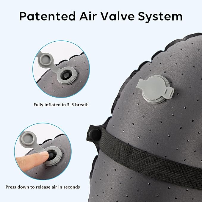 • Easy to inflate and deflate: TOBTOS camping pillow features a unique valve design that can be fully inflated with only 3-5 breaths. You can adjust the softness and hardness of the pillow according to your sleep preferences