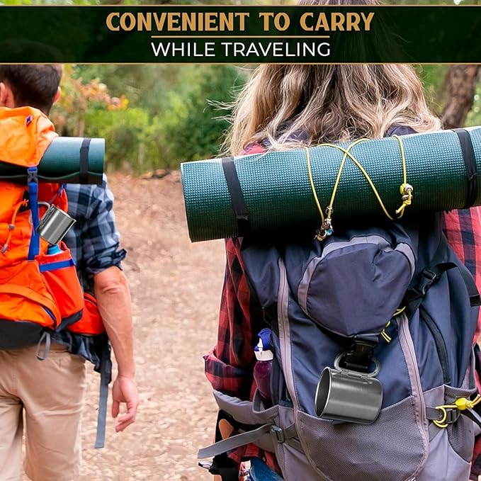 • Quality material: Built to withstand tough conditions, our stainless steel camping mugs are made from durable materials and double as reliable metal cups for drinking in any outdoor setting