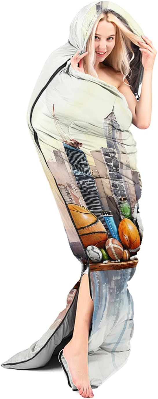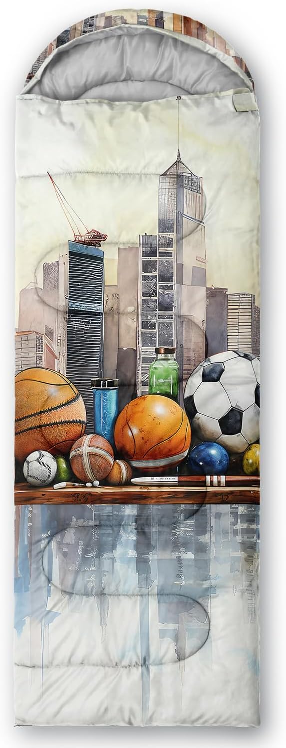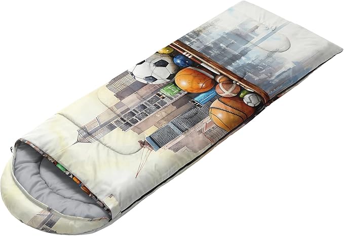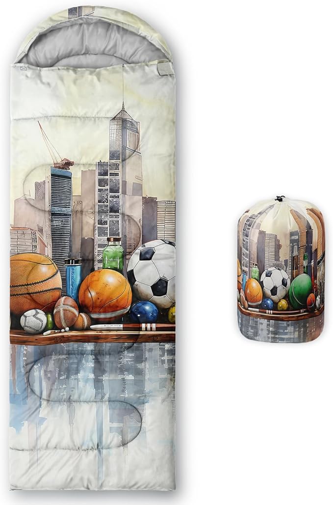 • Cartoon Sports Ball City Skyline sleeping bags For All Seasons- Our camping sleeping bags are designed to give you a good night's sleep. Ideal for spring,summer,fall,and winter,rated from 32°F to 77°F (optimal comfort temperature is 50°F to 65°F). Stay comfortable and warm in any condition at normal altitude. Can be used for any outdoor adventure,class camping,summer camps,couch surfing,indoor blanket,and as an emergency blanket for vehicles.