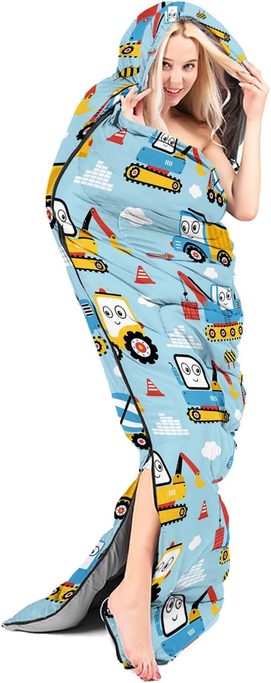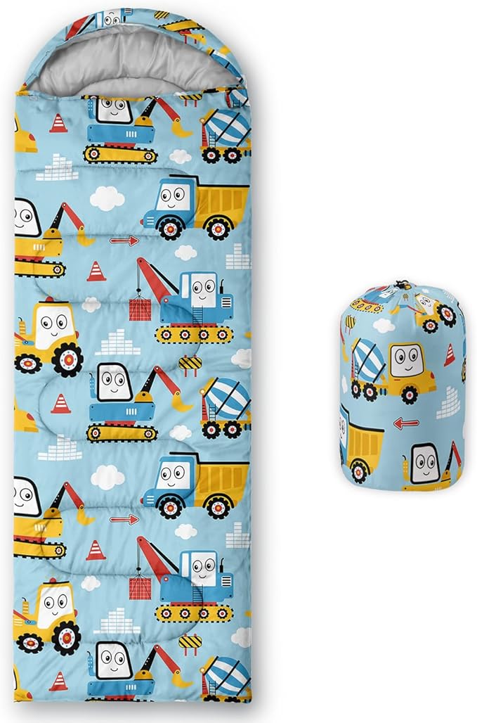 • Cartoon Excavator sleeping bags For All Seasons- Our camping sleeping bags are designed to give you a good night's sleep. Ideal for spring,summer,fall,and winter,rated from 32°F to 77°F (optimal comfort temperature is 50°F to 65°F). Stay comfortable and warm in any condition at normal altitude. Can be used for any outdoor adventure,class camping,summer camps,couch surfing,indoor blanket,and as an emergency blanket for vehicles.