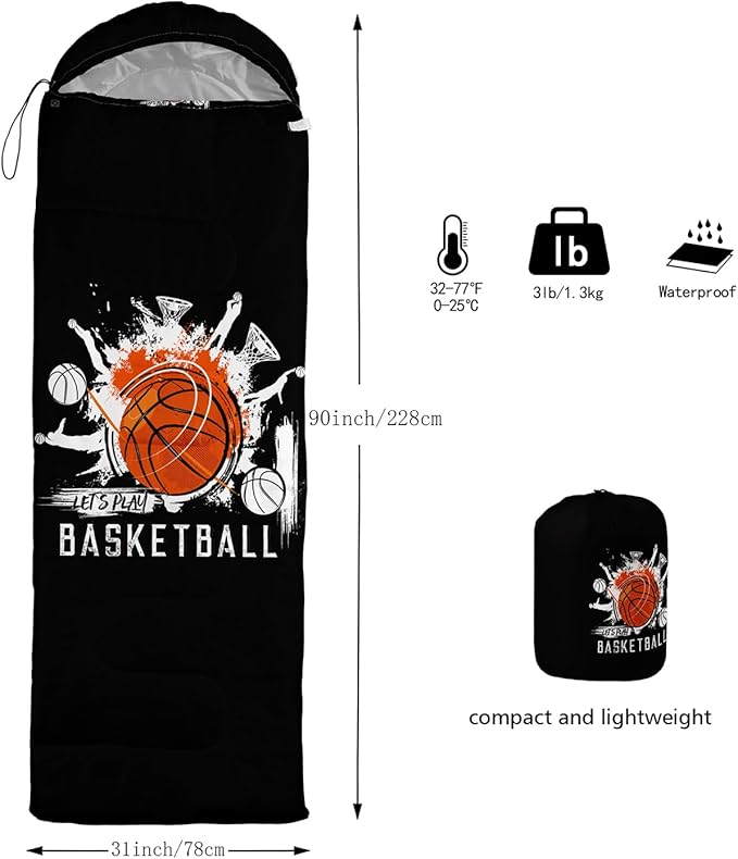 • Cartoon Sports Ball sleeping bags For All Seasons- Our camping sleeping bags are designed to give you a good night's sleep. Ideal for spring,summer,fall,and winter,rated from 32°F to 77°F (optimal comfort temperature is 50°F to 65°F). Stay comfortable and warm in any condition at normal altitude. Can be used for any outdoor adventure,class camping,summer camps,couch surfing,indoor blanket,and as an emergency blanket for vehicles.